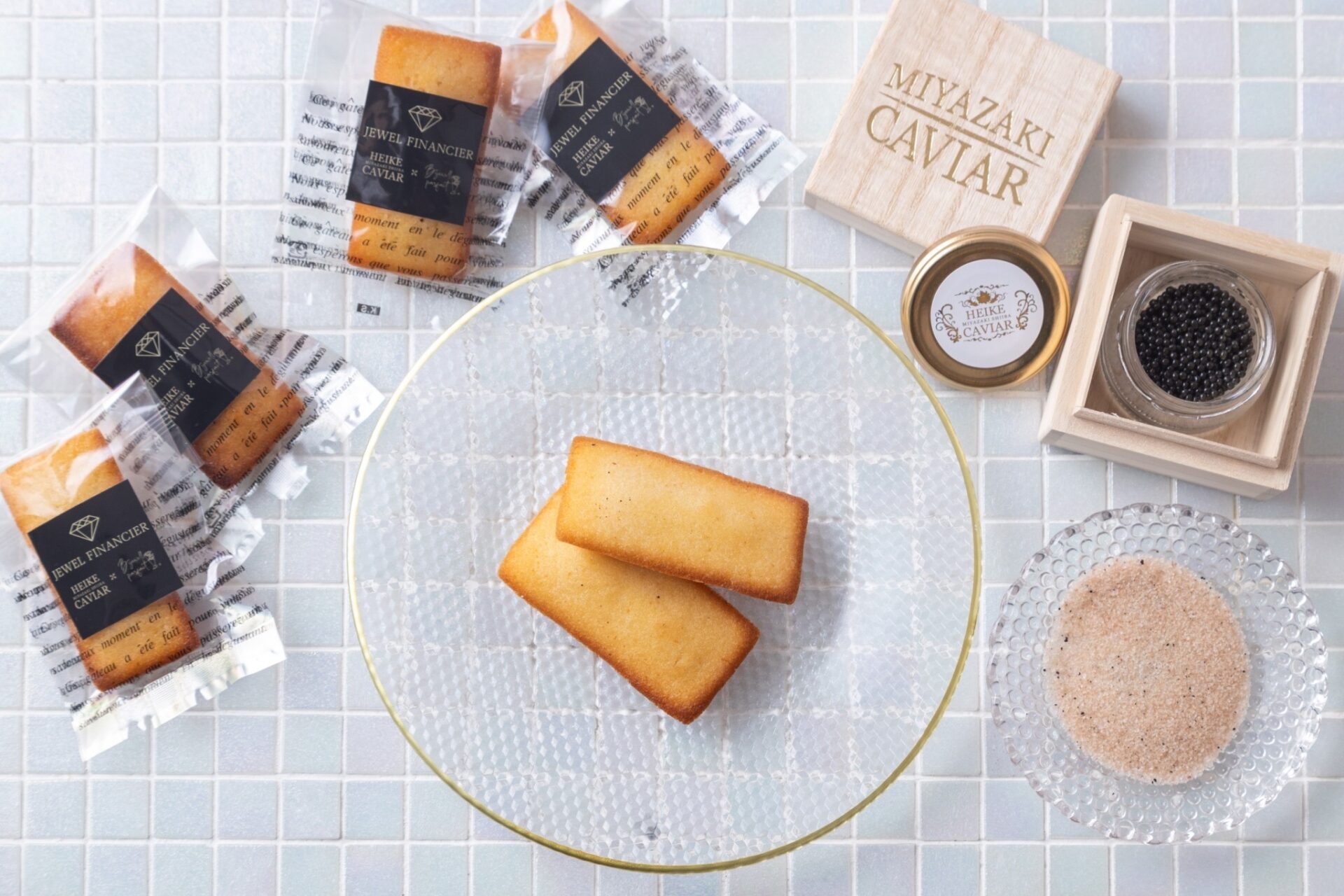 黒い宝石、食べる宝石と呼ばれる国産キャビアを採卵・製造する宮崎県の「平家キャビア」と広島の老舗宝石店 JEWERyITOが直営する宝石をテーマにしたスイーツを展開する「Bijewell parfait」が共同開発したフィナンシェ。
